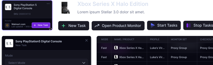 Stellar AIO supports over 50 websites. Our most popular site modules include Amazon, Walmart, Target, Best Buy, The Home Depot, Apple, BoxLunch, Hot Topic, Crocs, FunkoShop, Hibbett, Lego, NewBalance, Nike, Nintendo, Panini, ShopDisney, Adidas, AbcMart, Base, Billys, Rakuten, Stores, Zozo, WTAPS, LuisaViaRoma, OffSpring, Office, Academy, Pokémon Center, Fanatics, Topps, GameStop, Newegg, NVIDIA US, Scan UK, Currys, and all Shopify sites (Kith, Undefeated, Supreme, Shop Nice Kicks...).